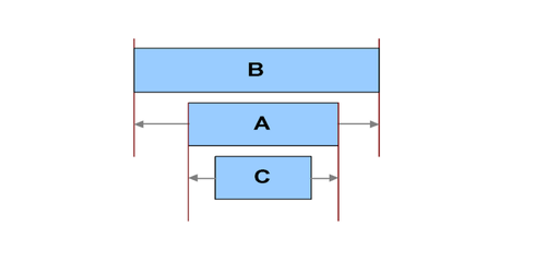 In the example above right, where A is longer, the equivalent would be: A S<=S B; B F<=F A